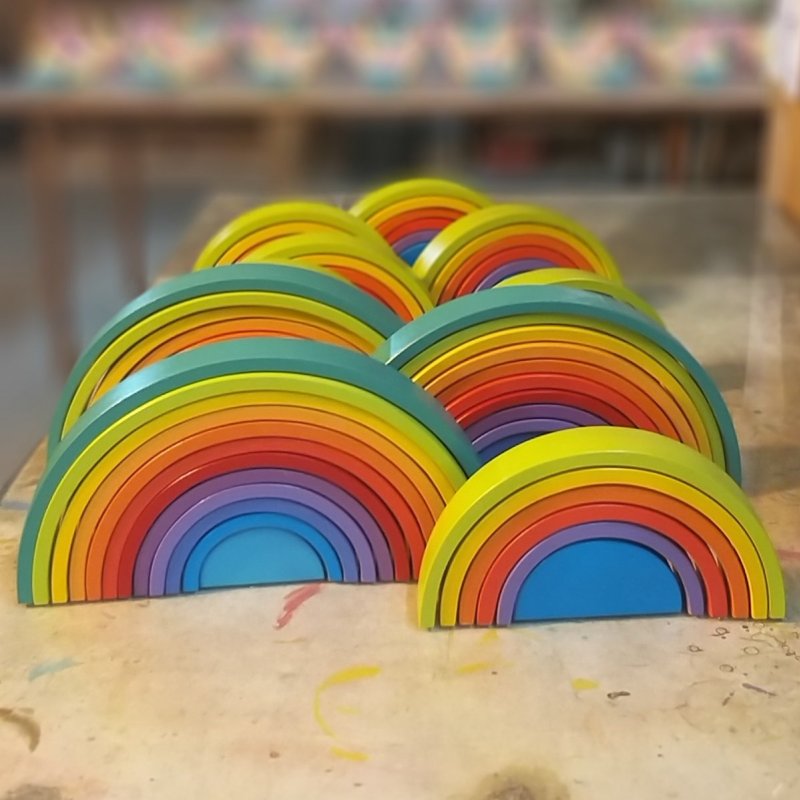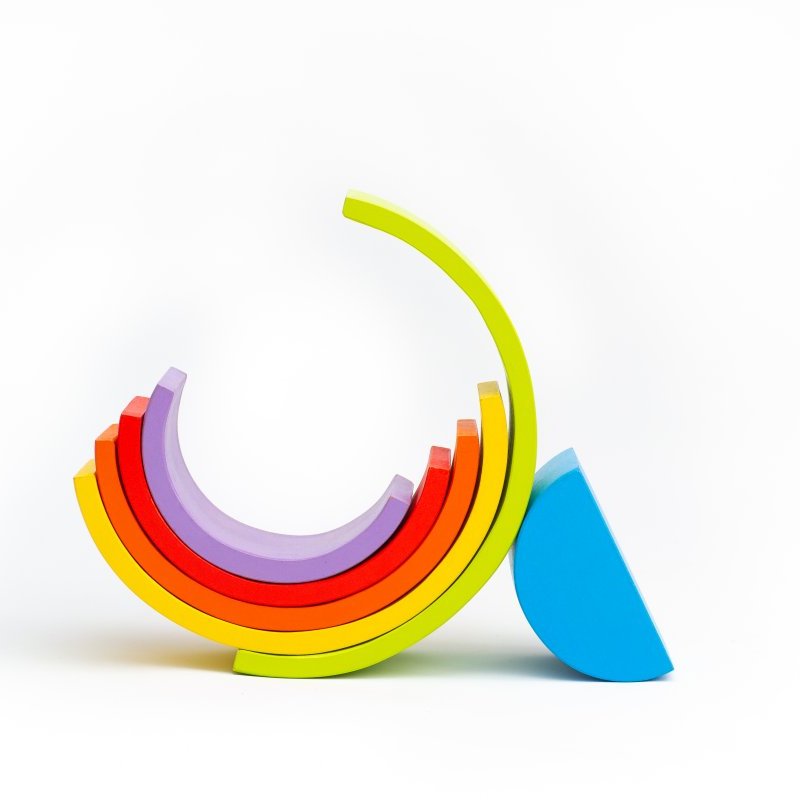 Y tantas otras cosas por descubrir con el ARCOÍRIS DE 6 PIEZAS. Sumergidos en la simpleza del arcoíris nos adentramos a un mundo mágico, descubriendo un amplio abanico de posibilidades por su gran versatilidad, dado que sus piezas pueden ser apiladas, ordenadas por tamaño, alineadas, y con ellas construir innumerables escenarios de mayor tamaño que recreen historias de la vida real (pueden ser puentes o túneles para los autos, torres, montañas, casas para los muñecos, laberintos de bolitas) fomentando el juego simbólico, la creatividad y la imaginación. Sus piezas pueden apoyarse desde diferentes bases otorgando la posibilidad de construir figuras tanto bi como tridimensionales, de gran altura o superficie. Fomenta la estimulación de funciones cognitivas como el uso de la lógica, la concentración, la atención, la resolución de problemas, presentándose desafíos de equilibrio y contrapesos en las construcciones. Por tener duplicadas sus piezas ofrece un plus de estimulación, pudiendo trabajar con él las simetrías, categorizar las piezas por tamaño y color. Es un producto tan versátil que se complejizará a medida que el niño crezca y desarrolle habilidades.